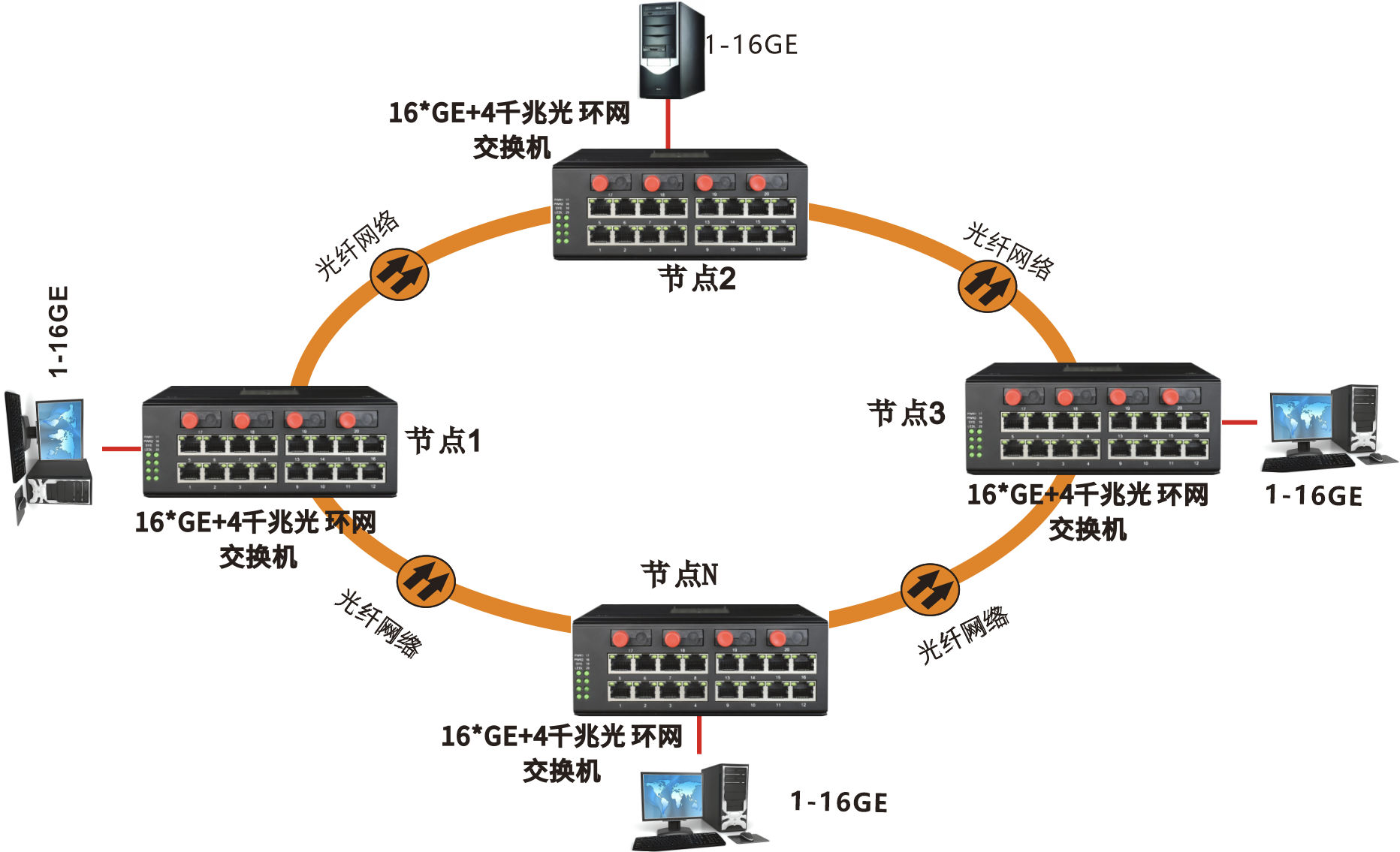 ◆  本產(chǎn)品集16路千兆電口與4路千兆光口,可以組成冗余單環(huán)拓?fù)浣Y(jié)構(gòu),
