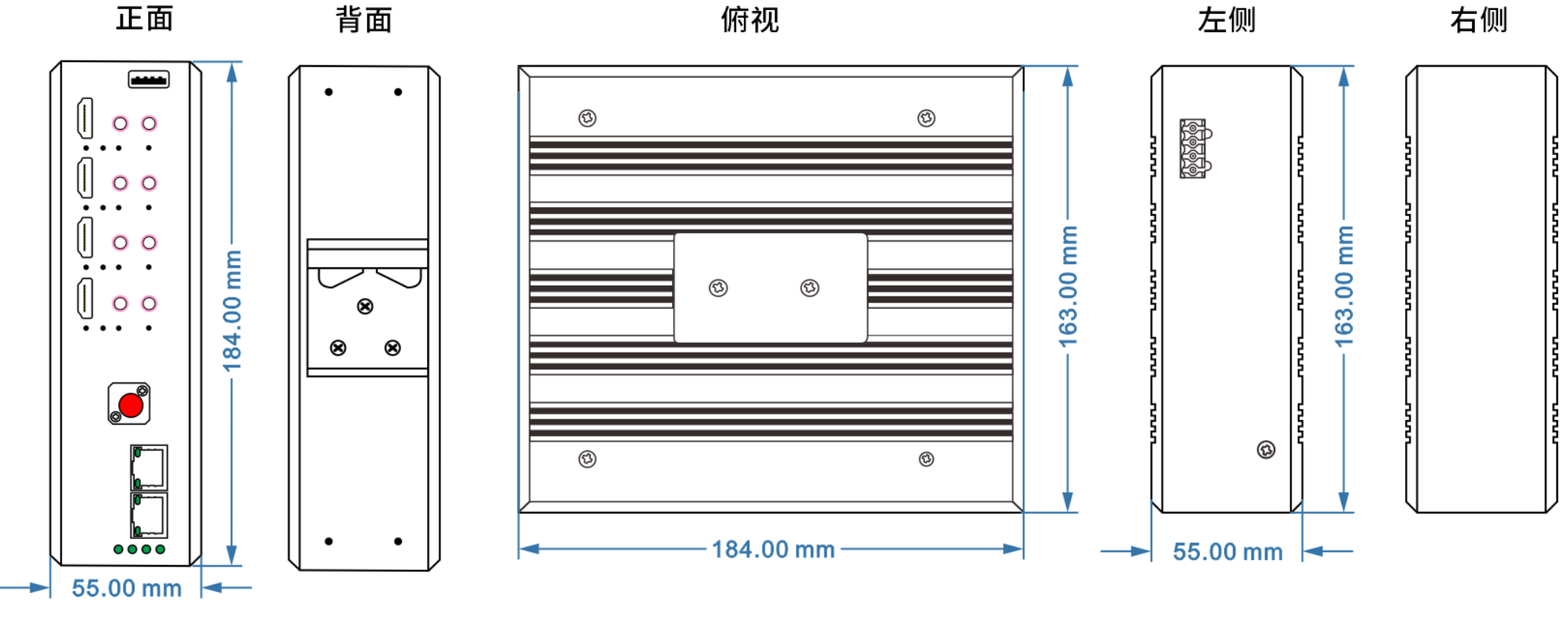 | 業(yè)務(wù)端口描述 | 1個(gè)光纖接口;4路HDMI信號(hào),2路千兆以太網(wǎng),1個(gè)USB接口 |